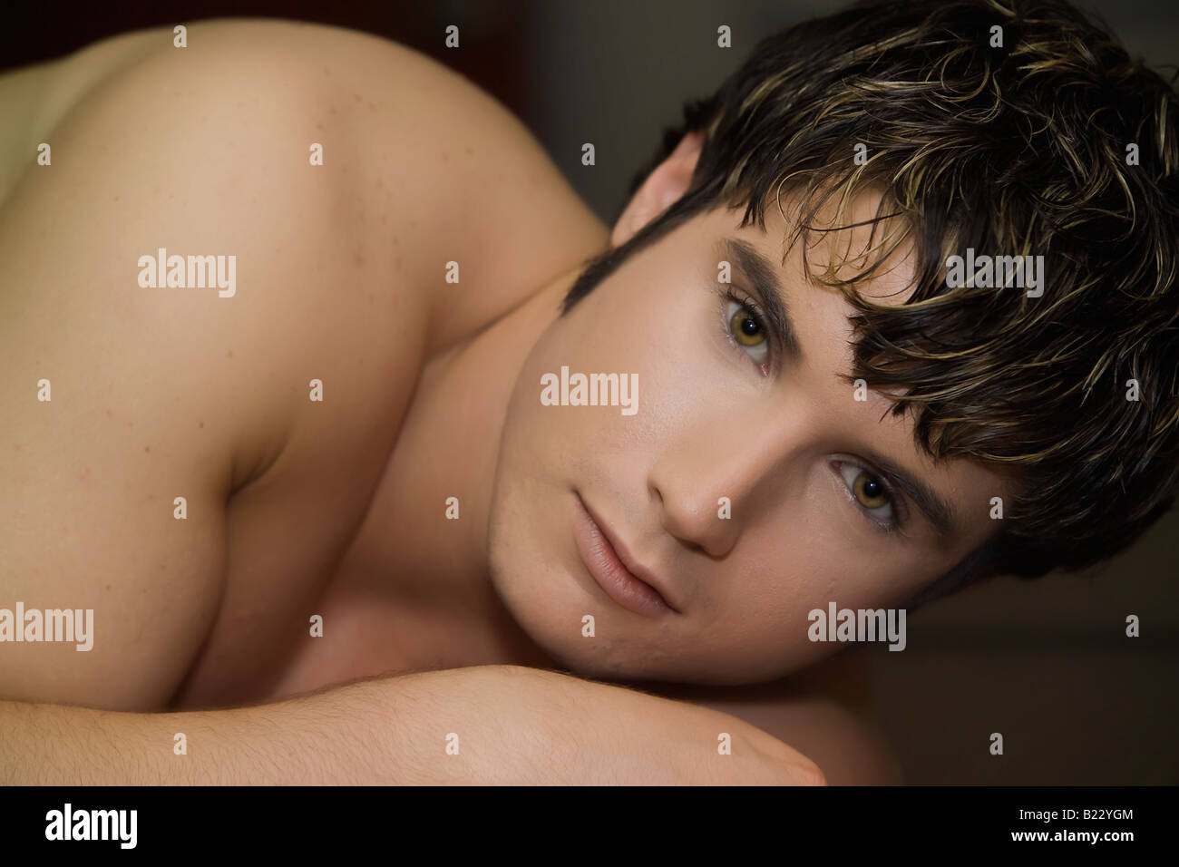 Zwanzig Etwas Kaukasischen Manner Kerle Mit Bernsteinfarbenen Augen Und Tollen Lacheln Headshoot In Nackt Stockfotografie Alamy